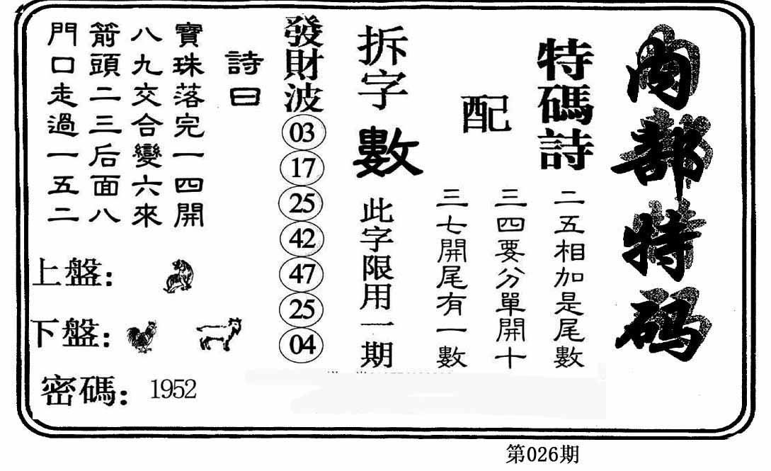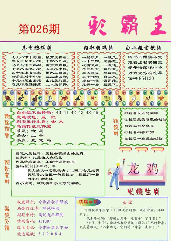 彩霸王六肖