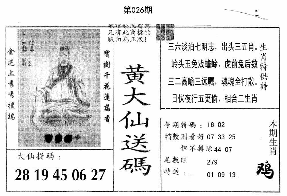 黄大仙送码